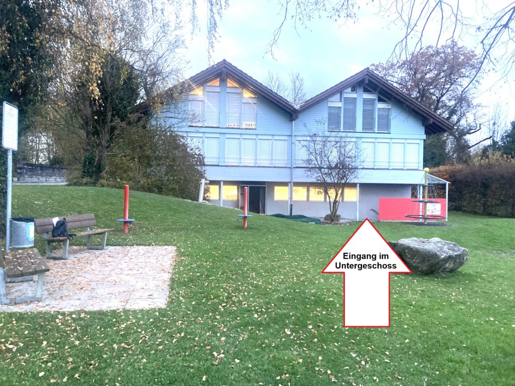 Im Bächis 37, ehemalige Turnhalle unter dem Kindergarten Hinterforst